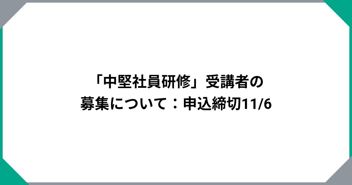 「中堅社員研修」受講者の募集について:申込締切11/6