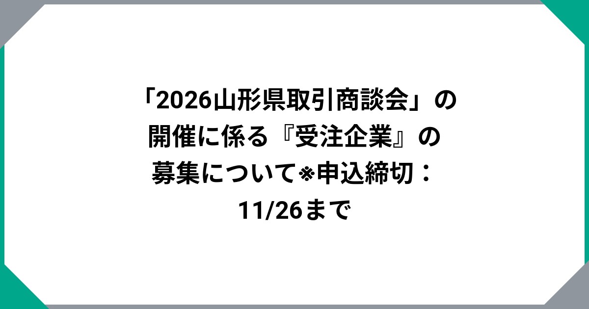 「2026山形県取引商談会」の開催に係る『受注企業』の募集について※申込締切:11/26まで
