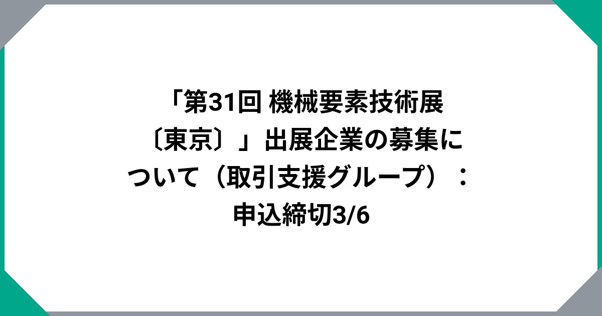 「第31回 機械要素技術展〔東京〕」出展企業の募集について(取引支援グループ):申込締切3/6