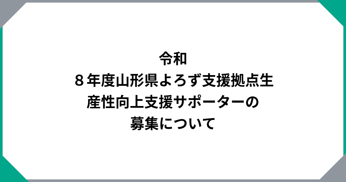 令和8年度山形県よろず支援拠点生産性向上支援サポーターの募集について