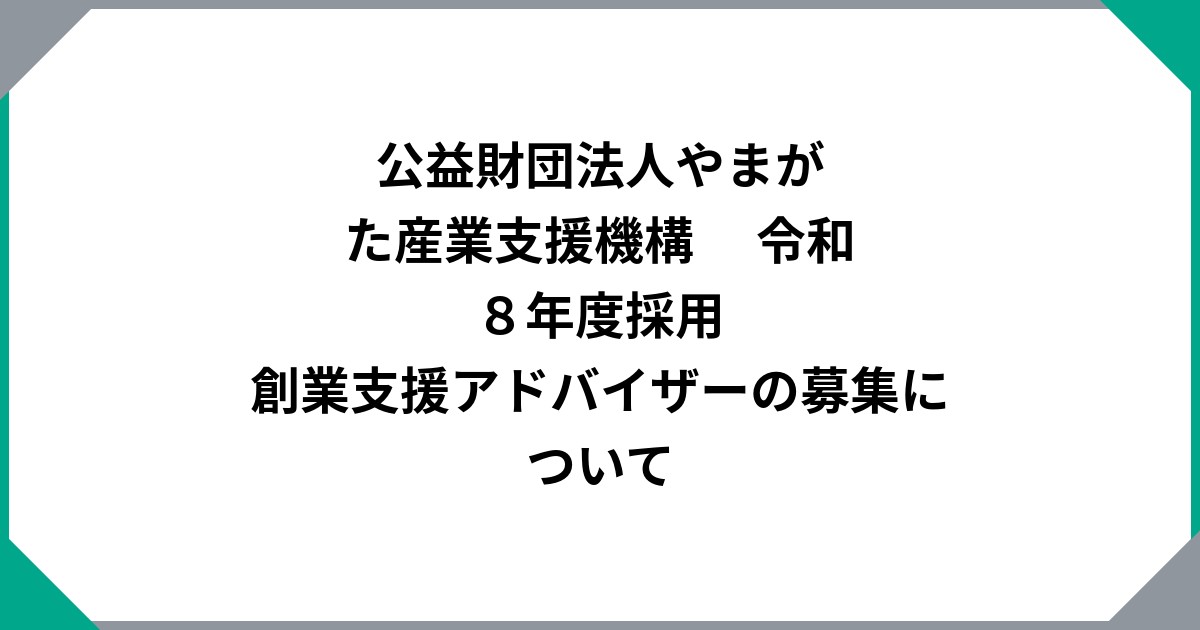 公益財団法人やまがた産業支援機構 令和8年度採用 創業支援アドバイザーの募集について