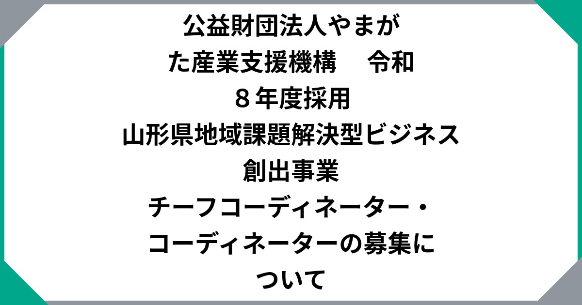 公益財団法人やまがた産業支援機構 令和8年度採用 山形県地域課題解決型ビジネス創出事業 チーフコーディネーター・コーディネーターの募集について